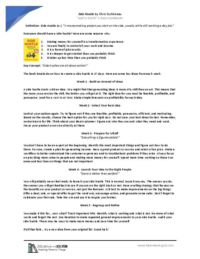 - Apply this book to your life and start a side hustle.